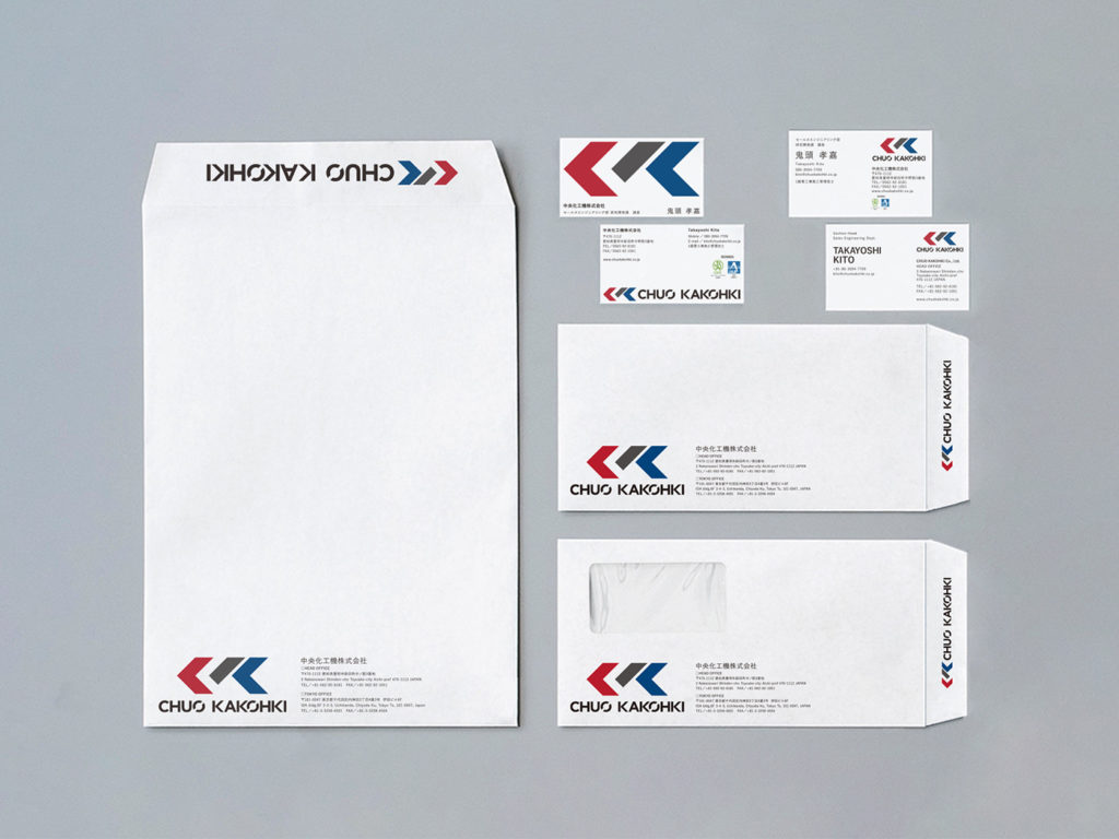 加藤:ウェブサイトをリニューアルしたときにも「ウェブサイトが変わったんですね」と声をかけられることはありましたが、コーポレートロゴを刷新したときには、それ以上にたくさんの反応があり驚きました。名刺をお渡しすると「素敵なロゴですね」と話が広がることもあり「この3色は、中央化工機の主要事業である『振動ミル』『振動乾燥機』『化工機器』の3本柱のイメージです」「この鋭角は、矢のようにまっすぐ進んでいく社風をあらわしています」と説明しています。完全に後付けなんですが(笑)
