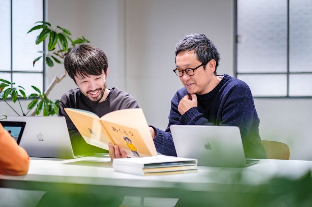 三浦:また、オリエンテーションの段階から、石川さんが「おもしろいことをやりたい」「家族に仕事や会社のことが伝わるようなものをつくりたい」とおっしゃっていたのが印象的でした。意見交換の際に出たアイデアは「おしごと図鑑」のような内容だったのですが、その後会社に持ち帰りLENSメンバーとブレストを重ね、絵本というカタチに。よりイメージが伝わるようにとコピーライターの古屋にも協力してもらい、全体のストーリーをつくったうえで提案に臨みました。