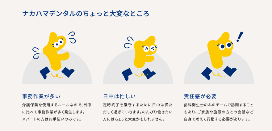 マエダ:最初は「キャラクターいるかな?」と思っていたんですけど、結果的につくってよかったです。広報物やSNSに使用したりノベルティをつくったりと今やナカハマデンタルのアイコンとしてしっかり機能していますし、ちょっと宣伝めいた告知をしたいときにもキャラクターを添えると宣伝っぽさが軽減される気がしています。