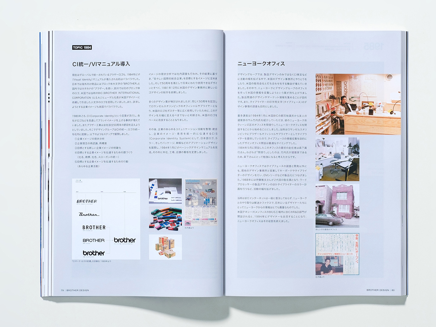 基本的な台割やフォーマット制作から携わり、紙面構成を築きました。各年代の扉ページや製品それぞれの扱い、間に挿入されるトピックスの構成で、退屈のない魅力的な一冊を目指しました。