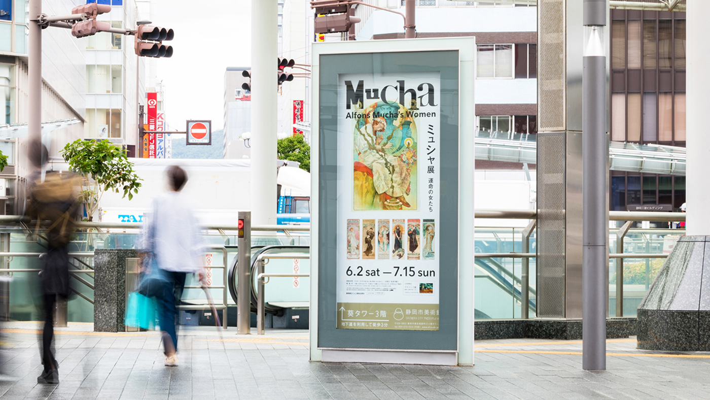 当初のオーダー通りの新しいミュシャの魅力を発信するデザインを喜んでいただき、全国巡回の中でもオリジナリティの高いデザインとなりました。